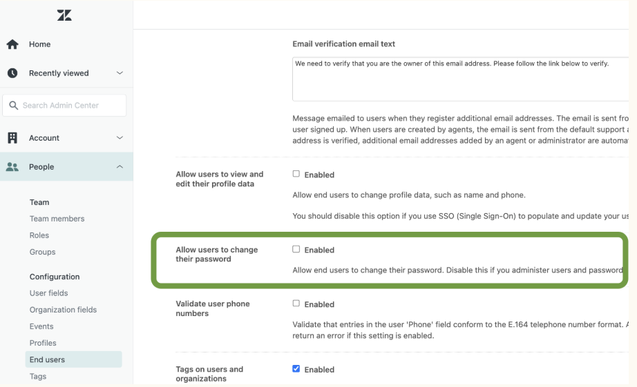 Check if the option Allow users to change their password in your Admin Center > People > Configuration > End users, is turned off.